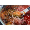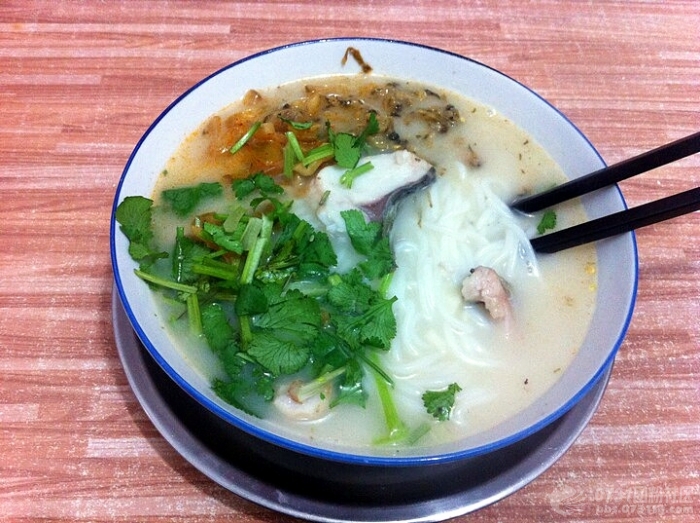 渔粉的做法最关键的是汤料,它由各种调料熬制而成,里面少不了鱼----姜----蒜----辣椒和茶油,那鱼必须是鲢鱼,而且应是早晨买来的活生生的鲢鱼,容不的半点假,用隔夜的或放在冰箱里的鱼来做,那汤料定不会鲜。辣的过瘾,鲜的入味就是渔粉最受人喜爱的地方。