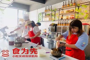 食为先根据不同市场及餐饮创业需求,进行300+热门小吃技术机构研发和传授,凭借雄厚的规模实力和丰富的餐饮实战经验,还向各位餐饮创业者分享《餐饮创业十八般兵器》,让你一看就会,一听就懂,一品就知,一问就明。