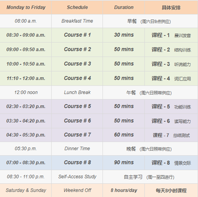 老师和学生一起同吃、同住、同学习,解决交通、伙食、住宿、家具等一系列学习的后顾之忧,确保每一名学员可以潜心读书,排除外界干扰以及人际烦扰,而且天天有老师在你身边督促你的学习,辅导你的功课,不懂的英语随时可以问老师,把时间用到尽,而大多数培训学校无法做到这一点,教学效果当然也就大打折扣。