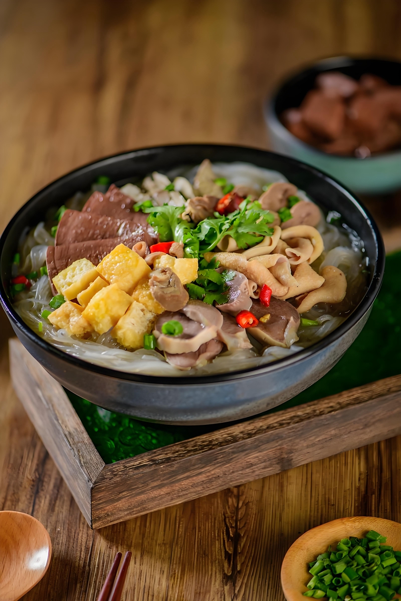 鸭血粉丝汤,又称鸭血粉丝,是南京的传统名吃,是久负盛名以鸭为特色的美食之一。鸭血粉丝汤由鸭血、鸭肠、鸭肝等加入鸭汤和粉丝制成。以其口味平和,鲜香爽滑的特点,以及南北皆宜的口味特色,风靡于全国各地。