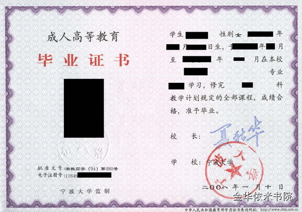 学生利用业余时间学习,各门课程成绩合格且参加成人高考录取者,发给宁波大学专科或本科毕业证书。文凭教育部电子注册,国家承认学历。符合学士学位授予条件的本科毕业生,可申请学士学位证书。