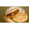 肉夹馍是古汉语“肉夹于馍”的简称,肉夹馍是陕西著名小吃。肉夹馍,实际是两种食物的绝妙组合:腊汁肉,白吉馍。肉夹馍合腊汁肉、白吉馍为一体,互为烘托,将各自滋味发挥到极致。馍香肉酥,肥而不腻,回味无穷。腊汁肉历史悠久,闻名中国,配上白吉馍,有着中式汉堡的美誉,扬名中外,深受人们喜爱。